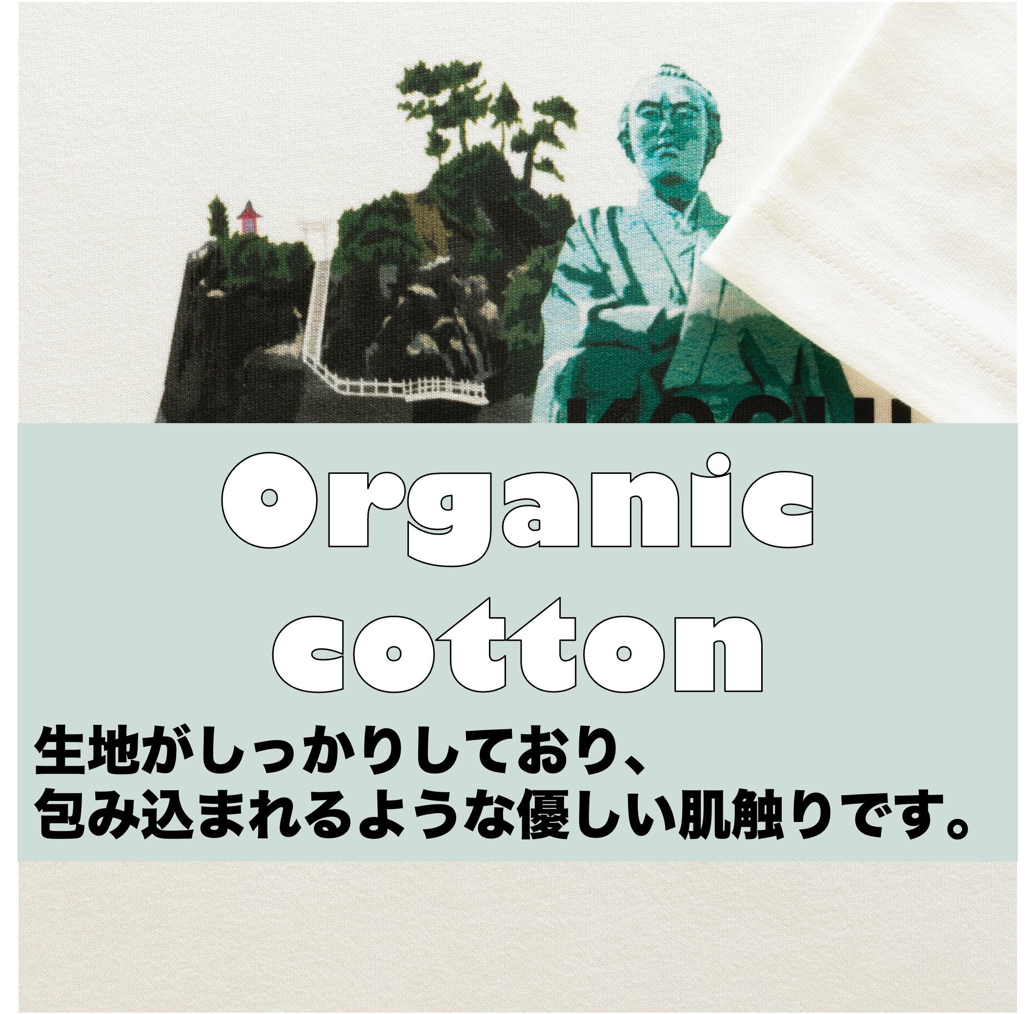 黒潮町で毎年開催される「T シャツアート展」で生まれた、環境に配慮したオーガニックコットン T シャツです。オフホワイトの厚みのあるしっかりとした素材です。